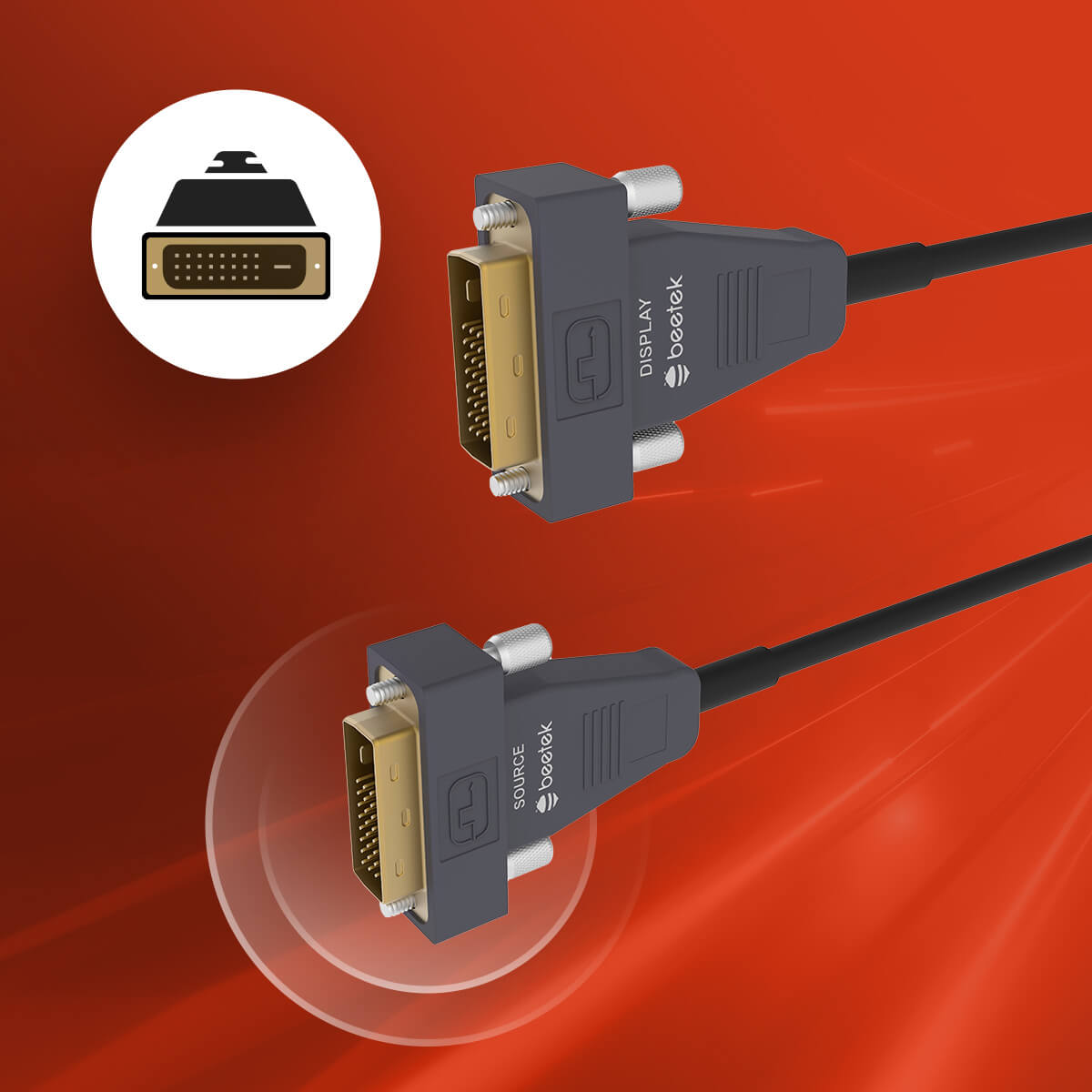 Beetek DVI Photo electric Hybrid Single End Threading cable supports signals 4K@30 4:4:4 10.2 Gbps. The ADVI 4K series products are designed for long distance signal transmission via fibre optic technology, OM3 fibre optic transmission with embedded optic engine technology achieves no delay and no compression The product is suitable for Rental, Live Events, Residential and surveillance applications