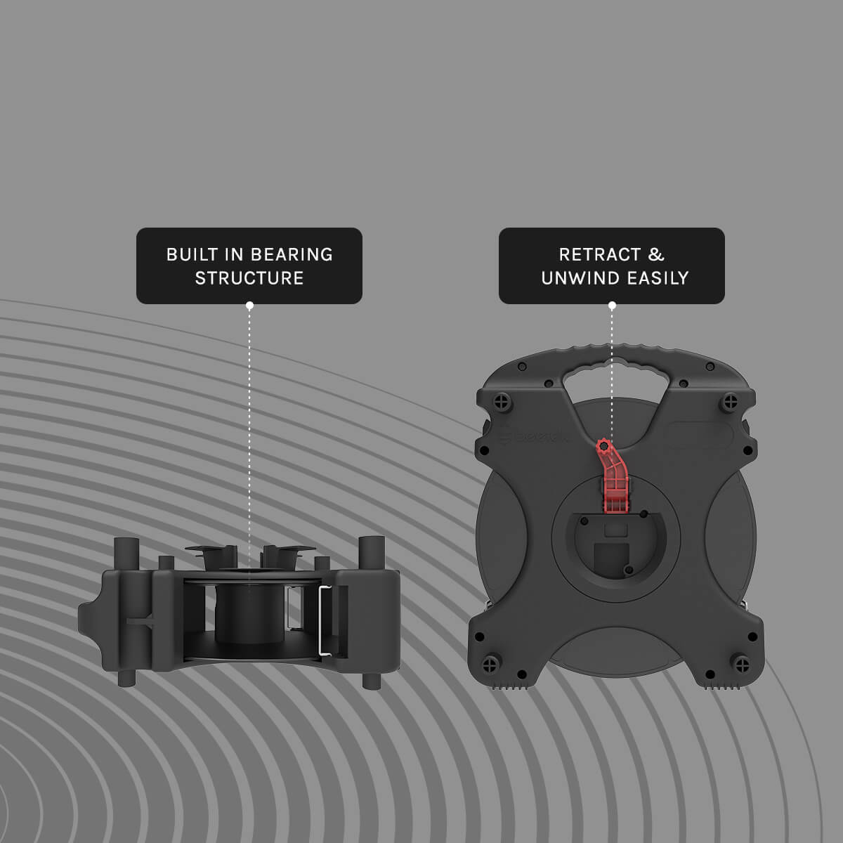 - Built in bearing structure and retainer can retract and unwind easily and can be managed by an individual