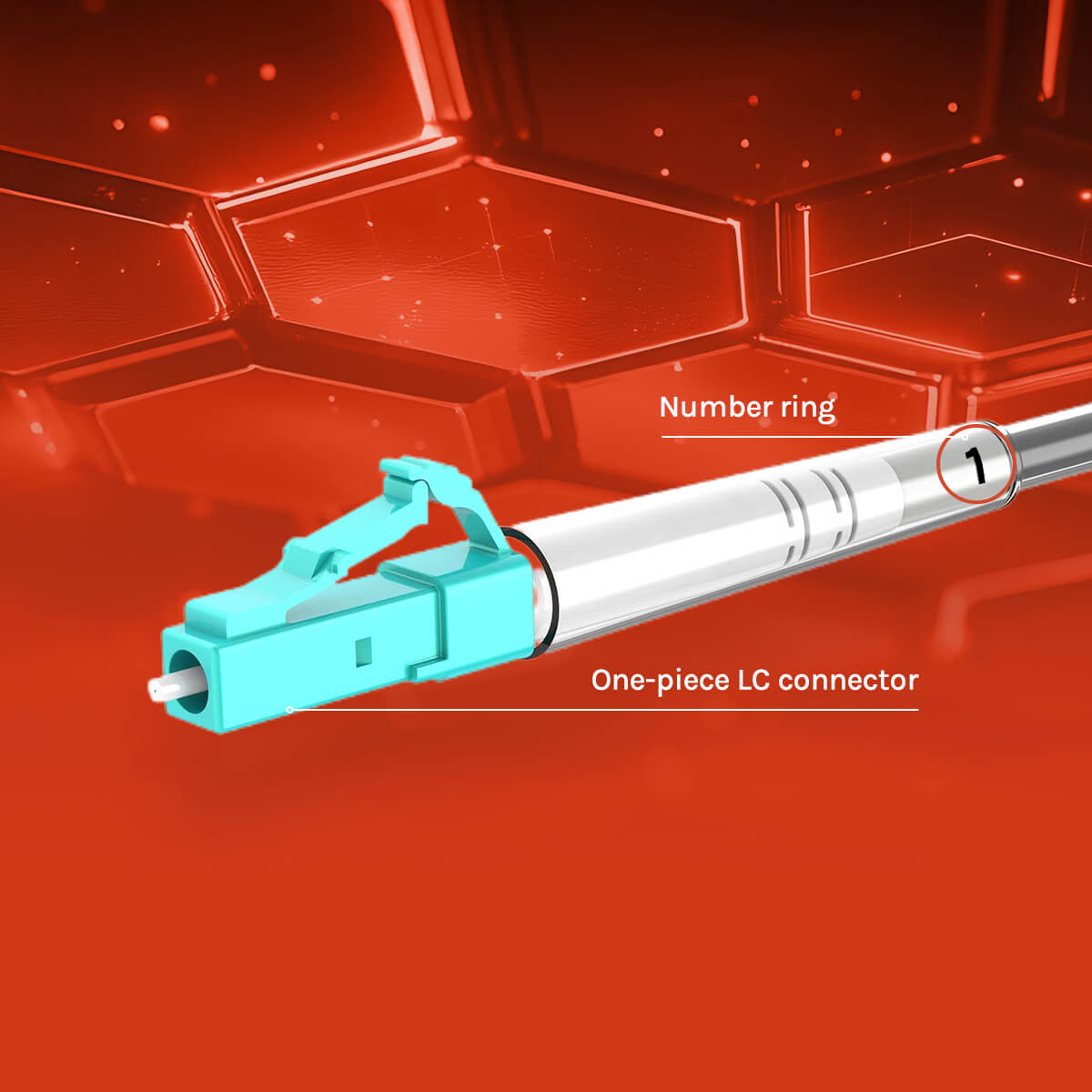 - LC connectors are integrated into the cable for strong and reliable connections.