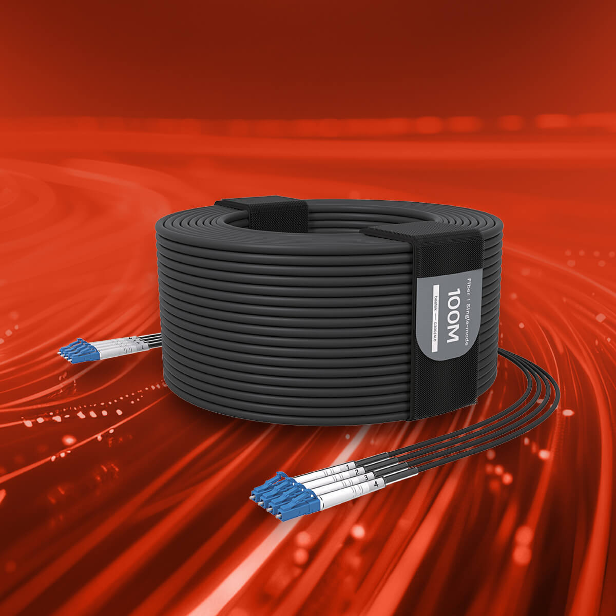 - LC connectors are integrated into the cable for strong and reliable connections.