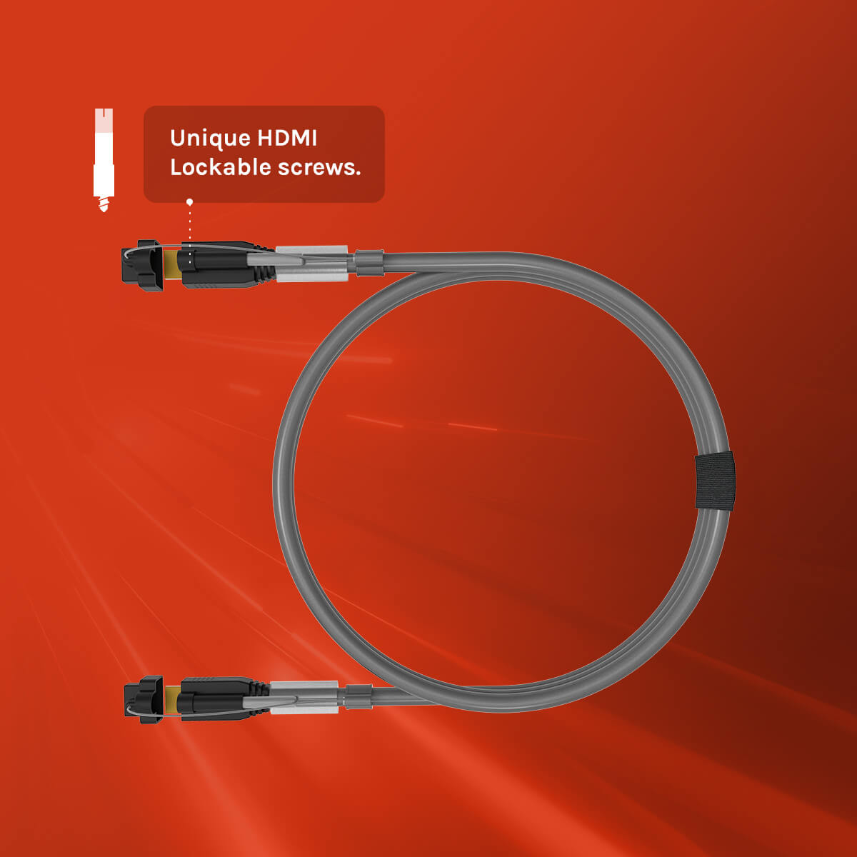 - The HDMI cable has 15 μm gold platted connector support 1000+ plug in and out and it has stainless steel knurling joint screw with unique detachable belt chain dust proof cap.
