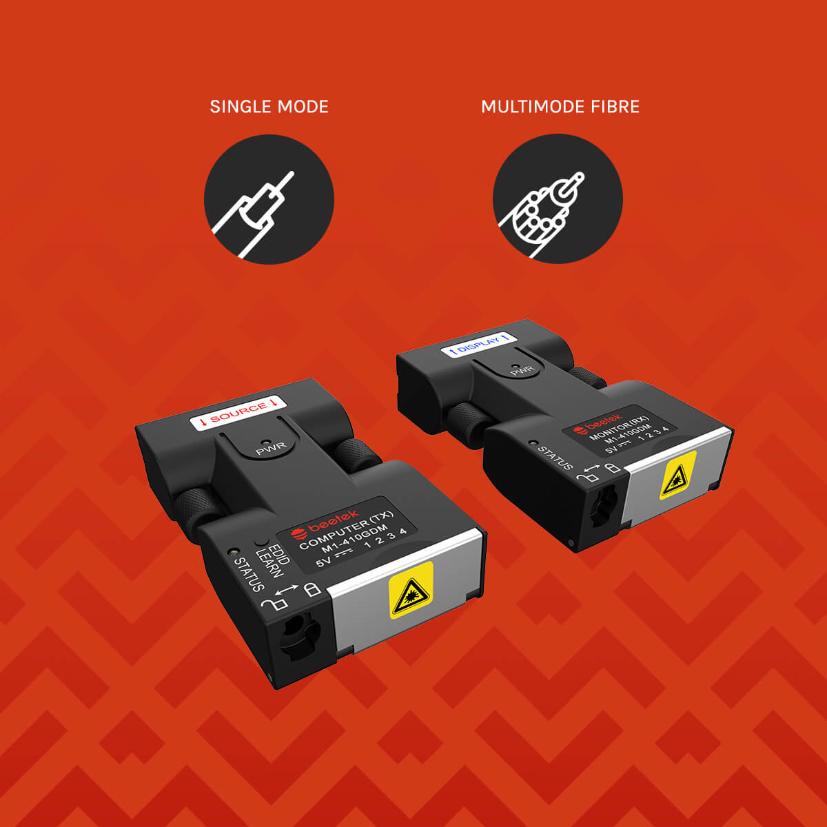 - Single Mode/Multimode Fibre Technology and uses four-core with distance upto 500 metres over single mode fibre
