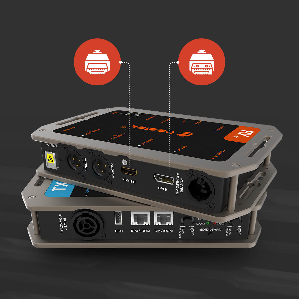 | Input Connector | TX: HDMI Type A Female, DP Female, UBS Type A Female, RJ45 *2, XLR Female *2 ; RX: Single-core LC |