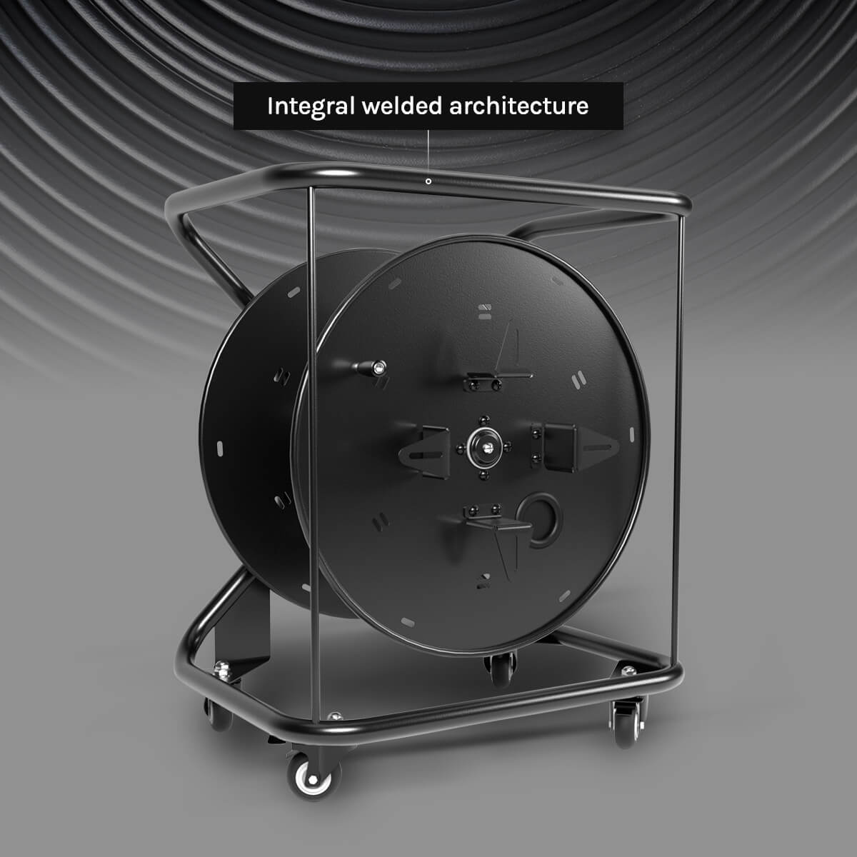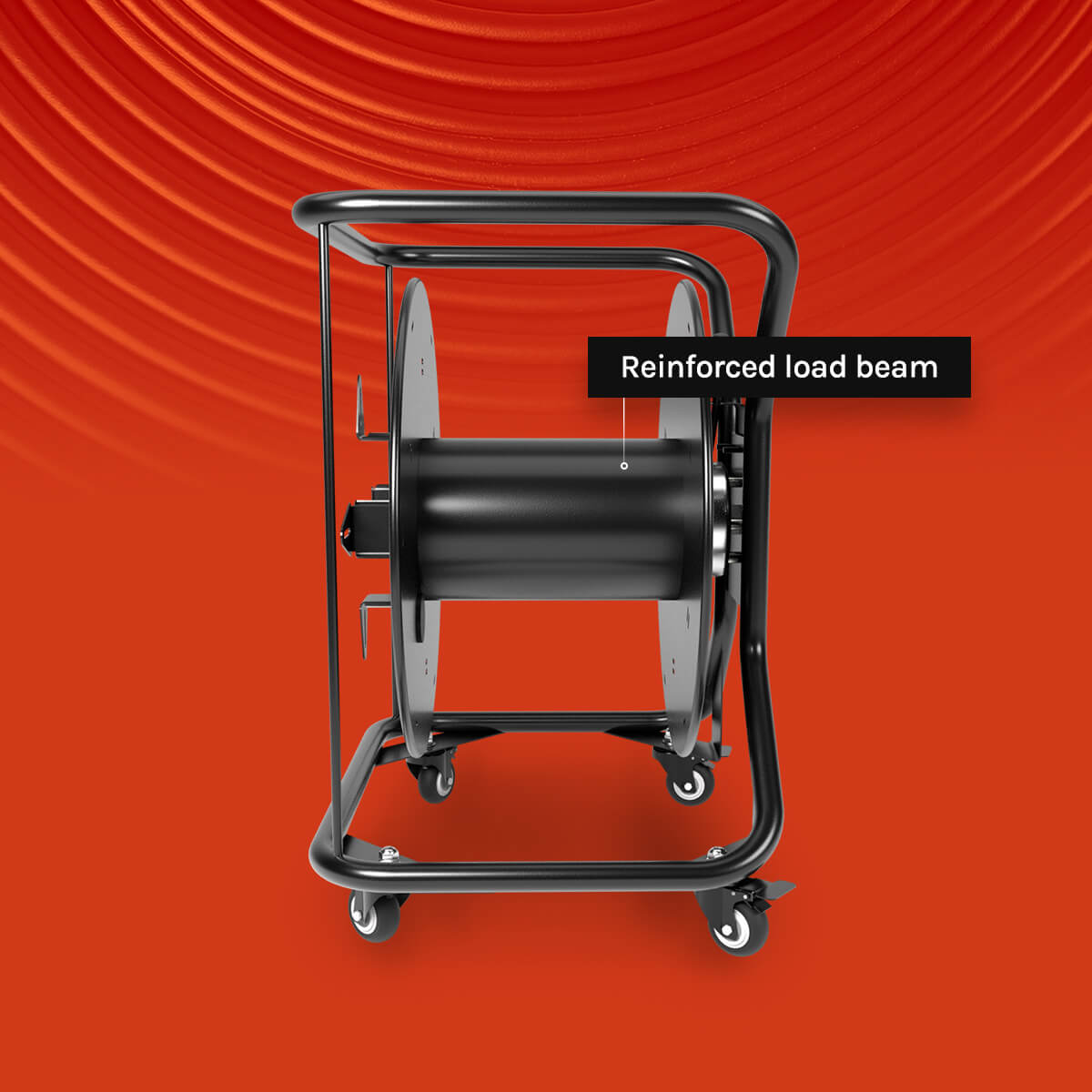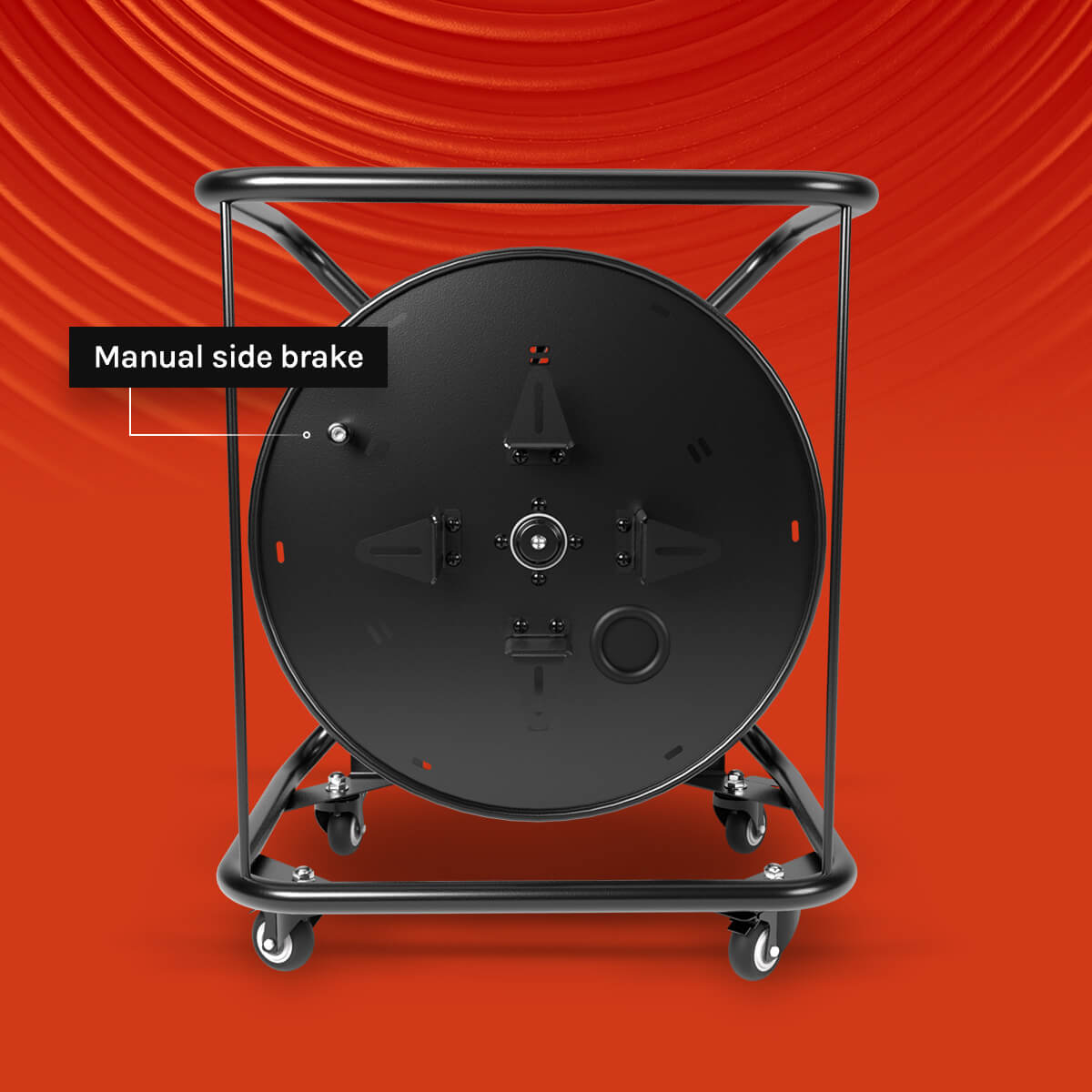 - The two powerful brake pedals keep the cable reel firmly planted.