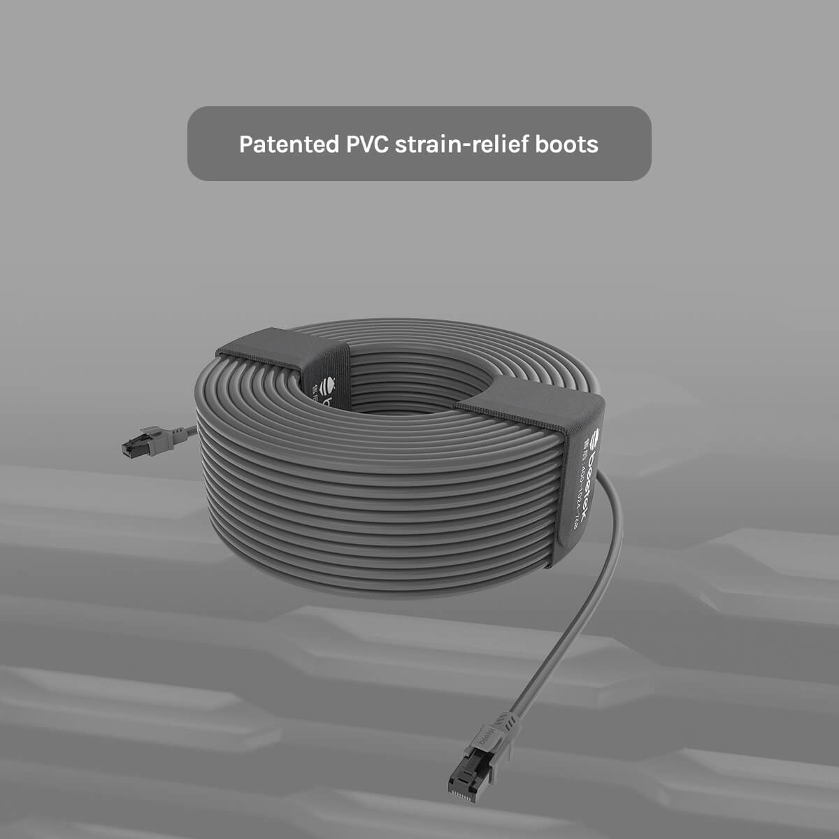 - Patented PVC strain-relief boots increases stability between connector and cable